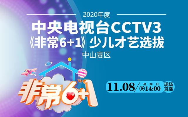 2020年度中央電視臺CCTV3《非常6+1》少兒才藝選拔中山賽區(qū)開賽(第四、第五場),11月8日下午2點,中山日報報業(yè)集團(tuán)中山網(wǎng)全程直播,敬請關(guān)注!