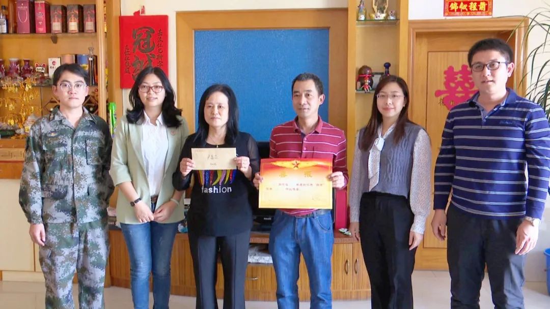 送喜報(bào)是小欖鎮(zhèn)擁軍優(yōu)屬的一項(xiàng)重要工作,將黨和政府對(duì)軍人軍屬的關(guān)心送到家中,增強(qiáng)立功受獎(jiǎng)家屬的榮譽(yù)感,在全社會(huì)營(yíng)造擁軍優(yōu)屬的濃厚氛圍。鎮(zhèn)武裝部、鎮(zhèn)退役軍人服務(wù)中心的相關(guān)負(fù)責(zé)人感謝家屬為國(guó)家培育了優(yōu)秀的士兵,并希望他們繼續(xù)做好軍人的堅(jiān)強(qiáng)后盾,全力支持子女在部隊(duì)安心工作,為國(guó)防事業(yè)做出更大貢獻(xiàn)。