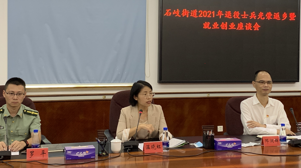 9月24日下午,石岐街道辦事處舉辦“2021年退役士兵光榮返鄉(xiāng)暨就業(yè)創(chuàng)業(yè)座談會”,歡迎今年光榮返鄉(xiāng)的士兵。街道辦事處副主任溫曉虹,公共服務辦、武裝部、退役軍人服務中心負責人以及今年秋季退役士兵一同參加了座談會。