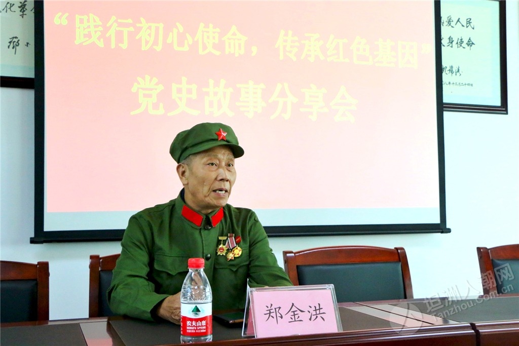 ▲參戰(zhàn)老兵鄭金洪給與會(huì)黨員干部分享戰(zhàn)斗經(jīng)歷,傳承紅色基因