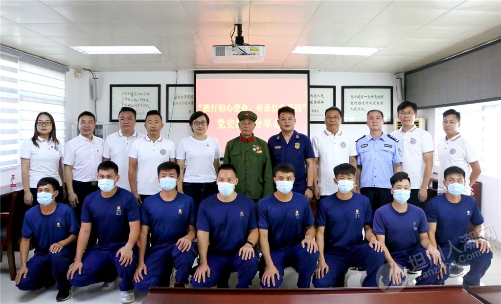 隨后,慰問組還邀請(qǐng)參戰(zhàn)老兵鄭金洪走進(jìn)中山市消防救援支隊(duì)坦洲大隊(duì)講述革命故事,給與會(huì)黨員干部和部分基干民兵送上了一堂生動(dòng)、鮮活的紅色教育黨課,讓全體人員感受參戰(zhàn)老兵的精神洗禮?!霸谝淮尾筷?duì)作戰(zhàn)時(shí),我和另一名貴州籍的戰(zhàn)友去攻打一個(gè)火力點(diǎn),我們一起在山腳的一塊石頭處掩護(hù),但根據(jù)我以往的作戰(zhàn)經(jīng)驗(yàn),我覺得這里不安全,于是趕緊對(duì)他說不要待在那塊石頭那,也不要站立,趕緊滾到下面的公路去;好在他聽從我的命令后,迅速地做出反應(yīng)。當(dāng)我們到達(dá)安全地方時(shí),長舒一口氣,一直聽到有子彈嗖嗖嗖地從那塊石頭附近穿梭而過;而那位戰(zhàn)友感慨地跟我說‘班長,好在你迅速做出反應(yīng),不然我在那不是受傷就是死了。”鄭金洪以親身經(jīng)歷聲情并茂地向大家講述了當(dāng)年戰(zhàn)火紛飛的戰(zhàn)斗經(jīng)歷。