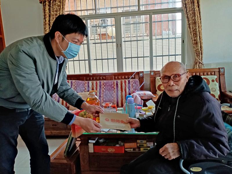 1月29日,中山市坦洲鎮(zhèn)副鎮(zhèn)長(zhǎng)何俊燁率坦洲鎮(zhèn)退役軍人服務(wù)中心相關(guān)負(fù)責(zé)人慰問(wèn)該鎮(zhèn)在鄉(xiāng)復(fù)員軍人、抗美援朝老戰(zhàn)士及其他重點(diǎn)優(yōu)撫對(duì)象,送去黨和政府的關(guān)愛(ài)和新春祝福。 新春慰問(wèn)活動(dòng)