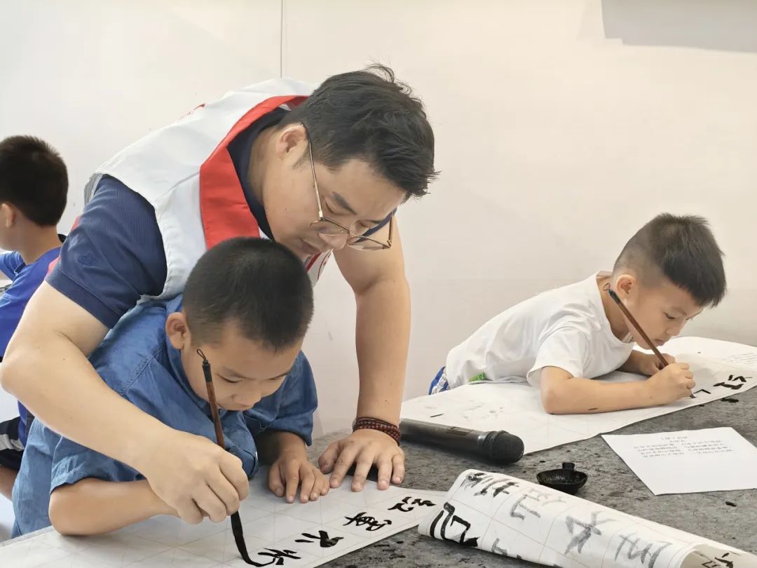 退役軍人走進(jìn)暑期夏令營(yíng)教孩子們寫書法
