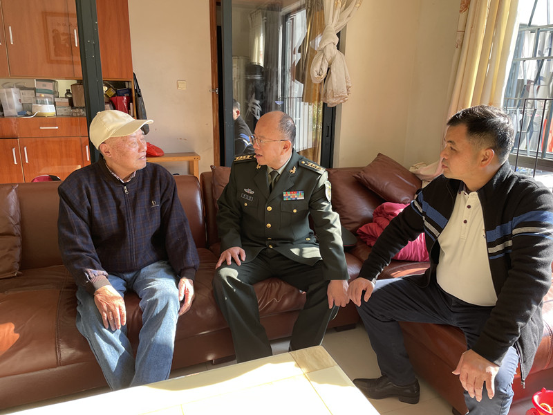 迎新春,送溫暖。1月19日,中山軍分區(qū)、中山市退役軍人事務(wù)局到南區(qū)街道聯(lián)合開展2023年春節(jié)走訪慰問活動,慰問因公十級殘疾軍人和現(xiàn)役軍人家屬,向他們致以新春的問候和美好祝愿。中山軍分區(qū)大校司令員李云濤參加慰問。 李云濤一行先后來到現(xiàn)役軍人家屬曹軍民和因公十級殘疾軍人胡華銀的家中,為他們送去慰問金和大米、食用油、面條、春聯(lián)等慰問品,并送去新年的祝福和關(guān)懷。 在現(xiàn)役軍人曹秦的家中,李云濤感謝其家人為部隊輸送了優(yōu)秀人才,為國防建設(shè)作出了突出貢獻。據(jù)了解,曹軍民的兒子曹秦于2022年9月入伍,服役于新疆烏魯木齊武警總隊。曹軍民表示,非常感謝黨和政府對現(xiàn)役軍人家庭的關(guān)心,把孩子交給部隊很放心。  ▲李云濤一行慰問84歲高齡的老兵胡華銀(左一)。 記者 張倩 攝