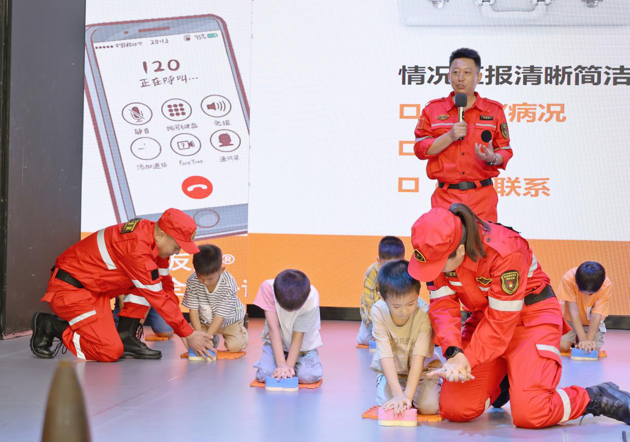 中山市擁軍支前紅旗服務(wù)隊隊長孫宏寧通過安全教育宣傳片、實際案例、情景模擬、互動問答等形式,從應(yīng)急救護(hù)、如何進(jìn)行心肺復(fù)蘇、120呼叫需要提何種信息等與青少年生活息息相關(guān)的內(nèi)容為小營友們講授暑期“安全第一課”,讓安全意識、安全技能深入到在場每位學(xué)生、每個家庭,希望小營友們在快樂過暑假的同時安全不“放假”。  國防教育現(xiàn)場。