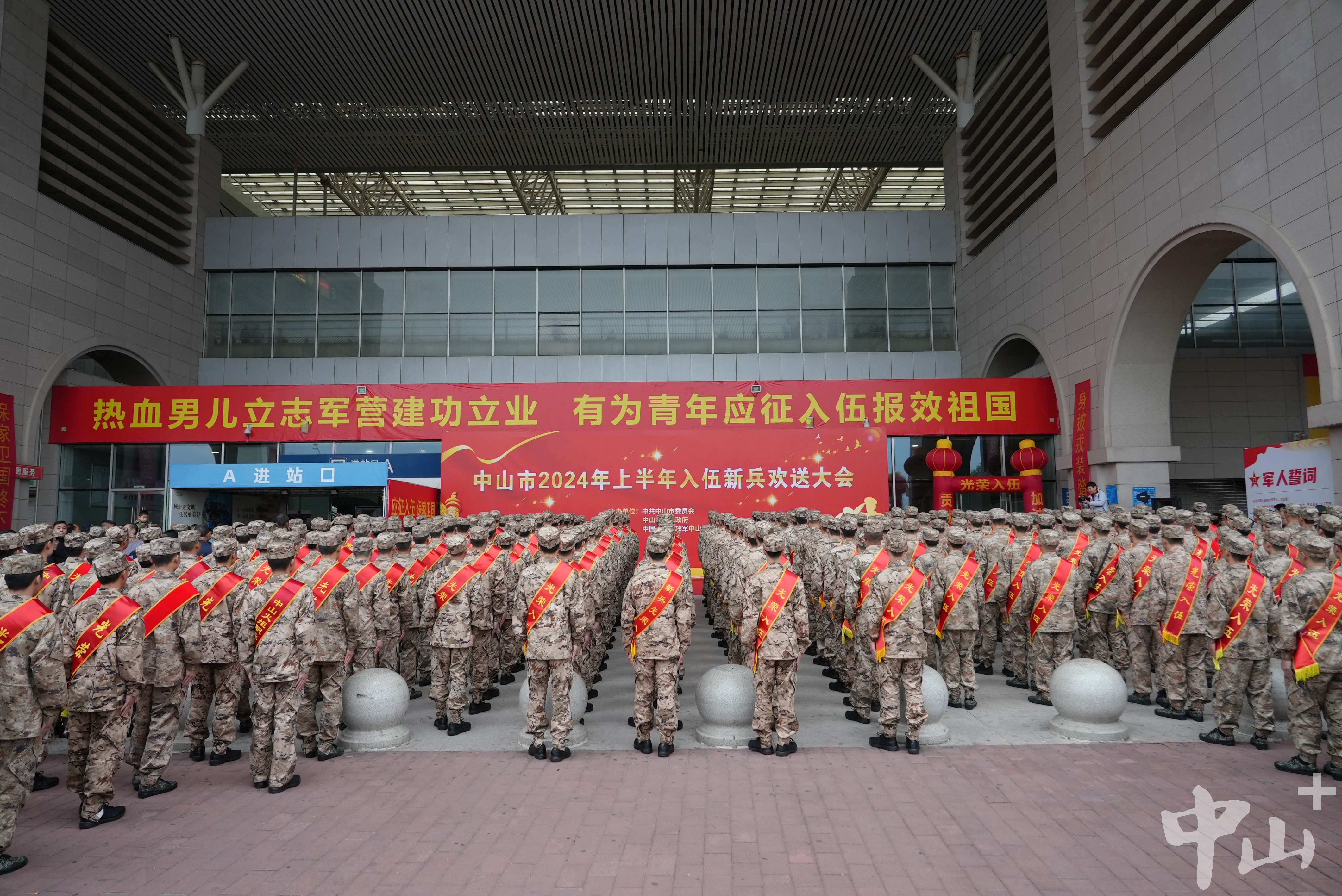 青春獻(xiàn)給國防,熱血報(bào)效祖國。 3月16日早上,中山市2024年上半年入伍新兵歡送大會在城軌中山站的進(jìn)站廣場舉行。300多名適齡青年經(jīng)過嚴(yán)格的體檢和政考,即將邁入軍營。