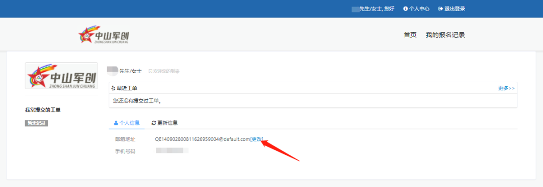 圖4 03 登錄信息 注冊(cè)成功后自動(dòng)跳轉(zhuǎn)至登錄界面,填寫相應(yīng)信息后登錄賬號(hào),進(jìn)入個(gè)人中心首頁(yè),將系統(tǒng)默認(rèn)郵箱更改為個(gè)人常用郵箱,方便大賽執(zhí)委會(huì)通知發(fā)送。如圖5-6所示: