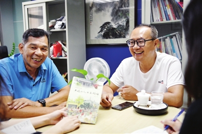 ▲“珠縱后代”黃躍進(右)和蕭亮忠(左)被聘為五桂山首批國防教育輔導員,讓紅色精神代代傳。