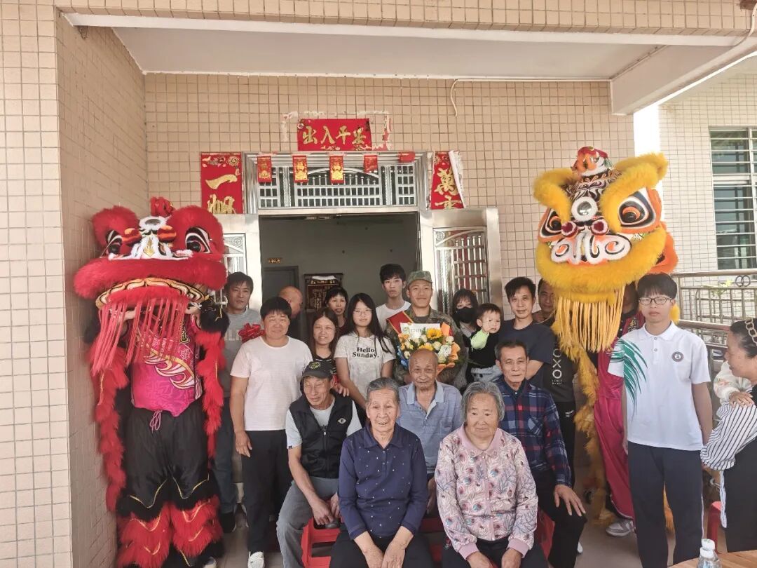 村內(nèi)特意邀請舞獅團(tuán)隊(duì)游村送兵,鑼鼓喧天,雄獅歡騰,父老鄉(xiāng)親們紛紛前來道賀,現(xiàn)場一片喜慶,滿是對吳啟杰的美好祝福,熱鬧的氛圍盡顯全村擁軍愛軍的濃厚情懷。