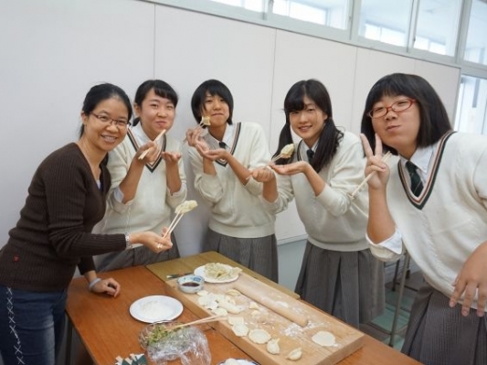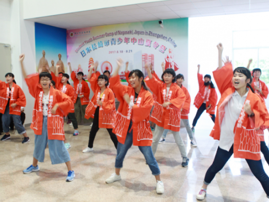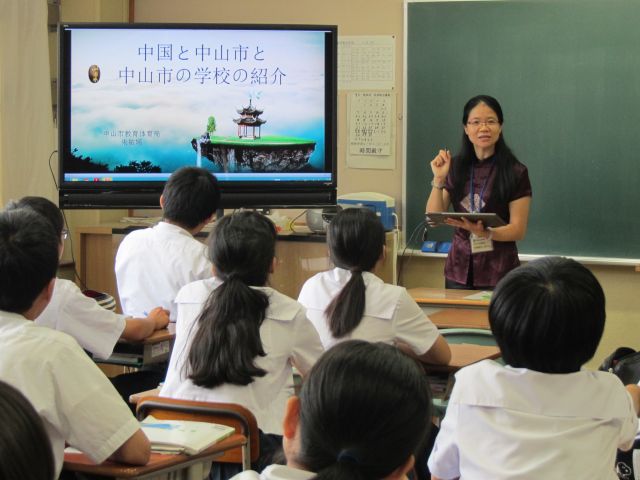 中山市華僑中學學生與櫻馬場中學生友好交談