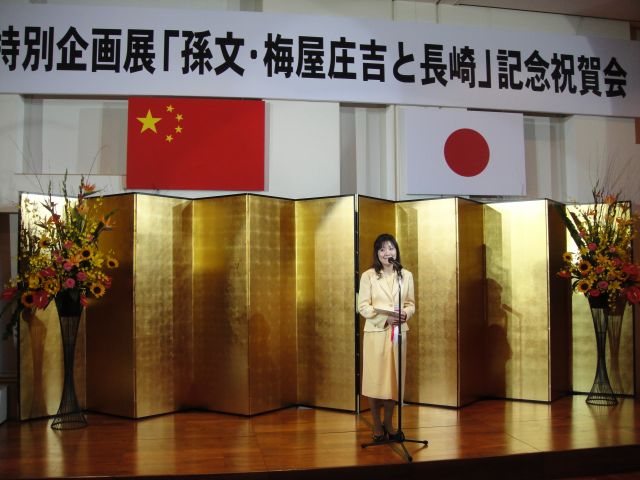梅屋莊吉曾外孫女小坂文乃女士在“孫中山?梅屋莊吉與長崎”專題展紀念祝賀會上致詞
