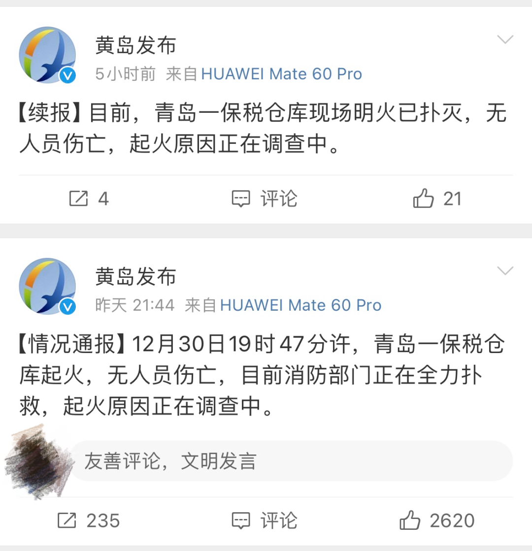 2023年12月30日19時47分許,青島一保稅倉庫起火,引發(fā)網(wǎng)友關注。