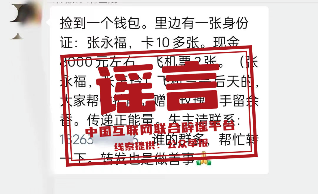 謠 言 多地有人撿到錢包、接力轉(zhuǎn)發(fā)“失物招領(lǐng)”信息?