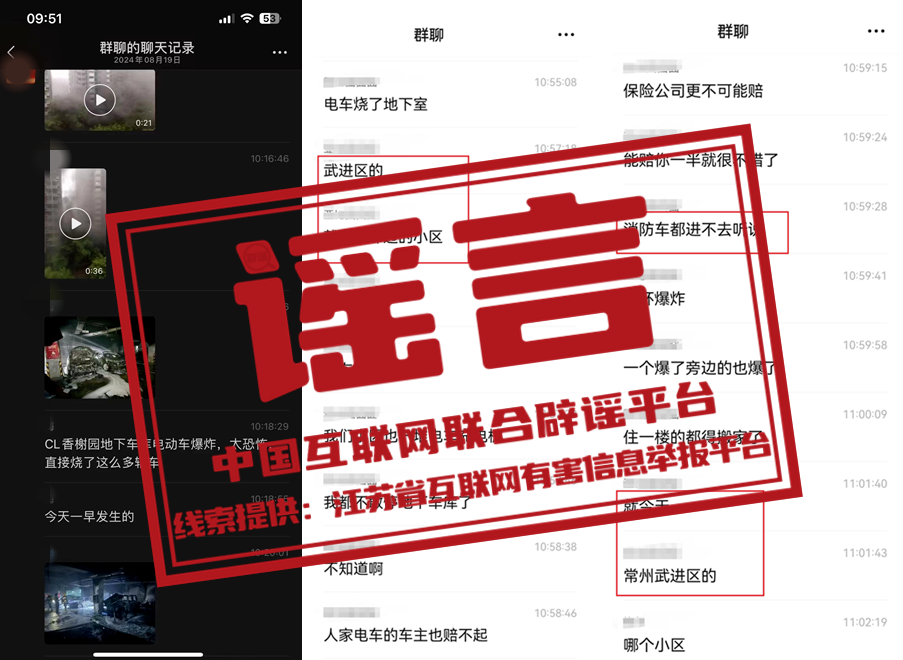 謠 言 江蘇常州一小區(qū)電車充電連環(huán)爆炸火燒地下室?