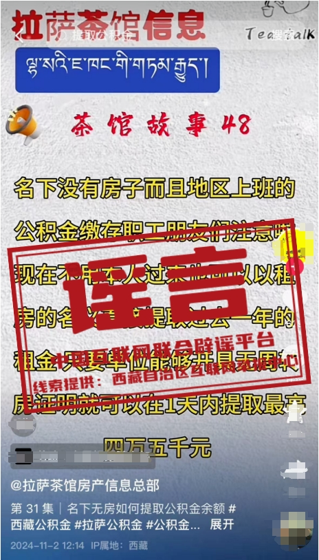 辟 謠 西藏拉薩市住房資金管理中心鄭重聲明