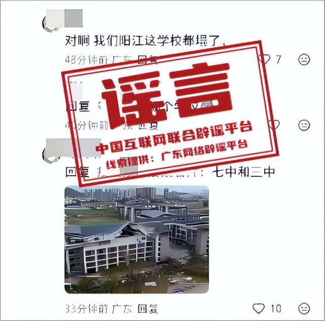 謠言:廣東陽(yáng)江兩所中學(xué)教學(xué)樓因臺(tái)風(fēng)坍塌?