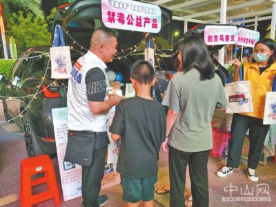 9月25日,夜幕降臨,中山市南區(qū)大信星匯店外,南區(qū)打擊治理電信網(wǎng)絡(luò)犯罪、掃黑除惡暨禁毒宣傳晚會(huì)的精彩表演吸引了不少市民駐足觀看。李德朗身穿白色的義工服,正積極向來來往往的行人介紹各款由戒毒學(xué)員制作的手工作品。被毒癮困擾多年成功戒斷的李德朗在清風(fēng)自游人公益服務(wù)中心社工引導(dǎo)下加入“友心人”隊(duì)伍,成為一名義工,對(duì)徹底擺脫毒癮更有信心。