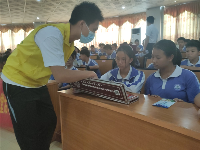 活動(dòng)現(xiàn)場(chǎng),鎮(zhèn)禁毒辦專干和禁毒社工通過派發(fā)宣傳單張、介紹仿真毒品模型、講解禁毒PPT、口號(hào)宣誓、有獎(jiǎng)問答等方式向?qū)W生們普及禁毒防毒知識(shí),力求從根源上打造無毒校園。