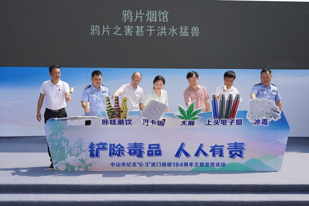 6月2日上午,中山舉行紀(jì)念“6·3”虎門銷煙184周年暨創(chuàng)建無毒村居主題宣傳活動。市禁毒辦、市公安局等單位代表近500人參加活動。